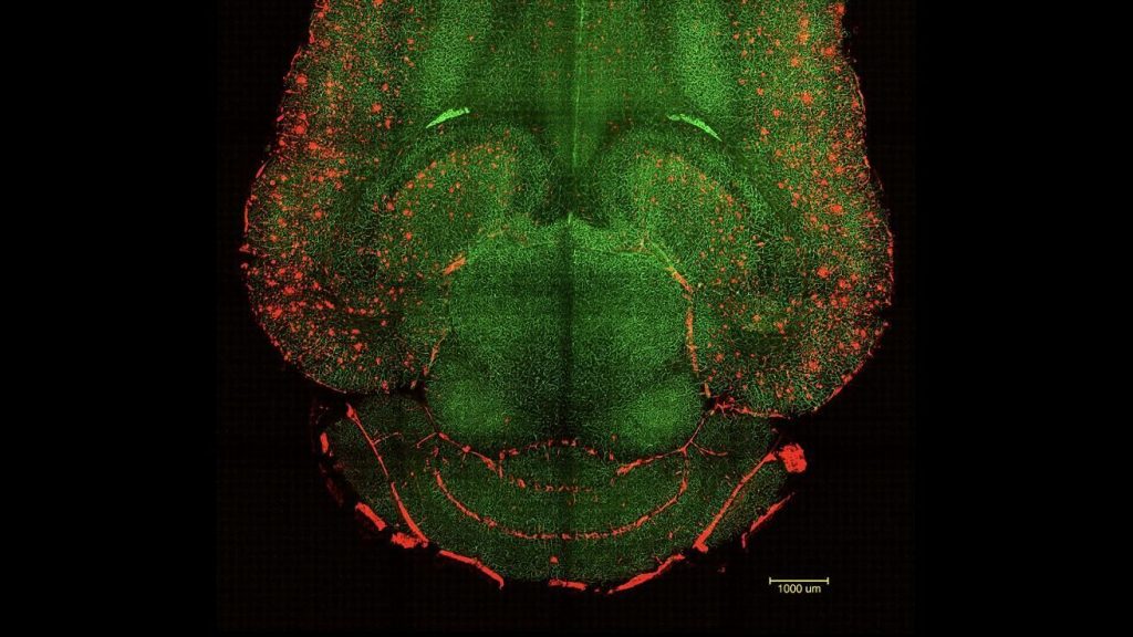 Imagen microscópica del cerebro de un ratón tratado con la nueva terapia basada en nanopartículas | IBEC