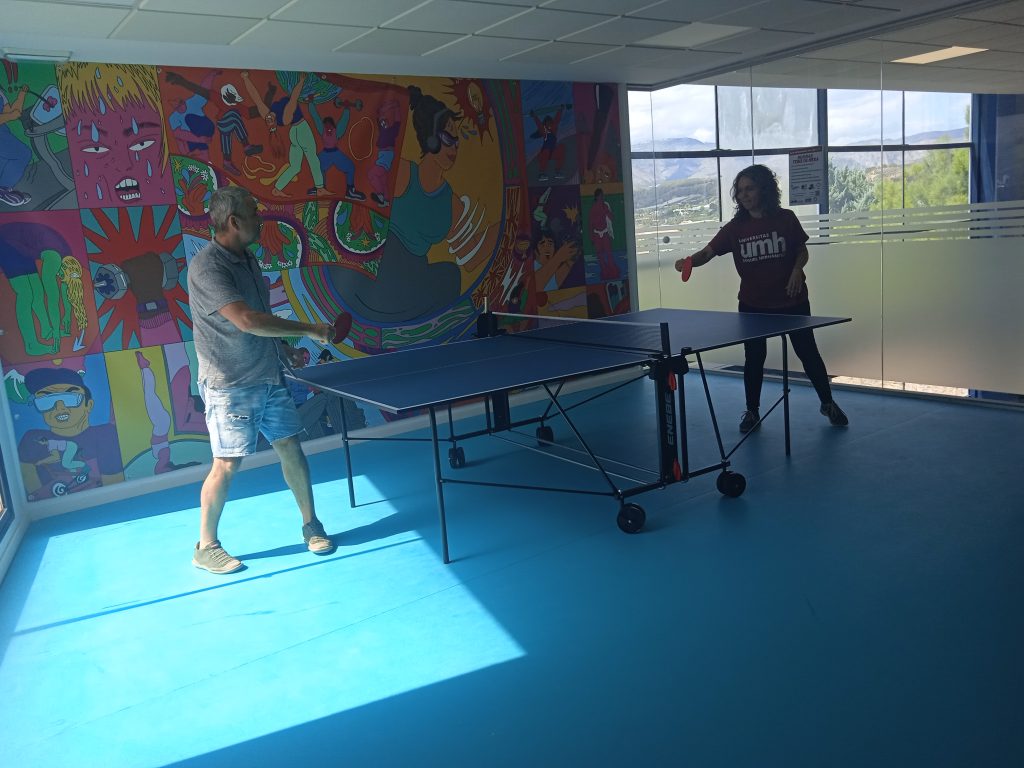 La segunda cita de los paseos saludables en Altea se realizó en otro lugar especial del campus, el Spazio UMHsaludABLE, un entorno diseñado para promover el bienestar físico y mental de la comunidad universitaria con zonas de juegos y ejercicio funcional. Ubicado en la 1ª planta del Edificio Puig Campana, este sitio fue el patio de recreo de nuestros compis para cumplir con el break y desconectar de una manera sana y divertida.